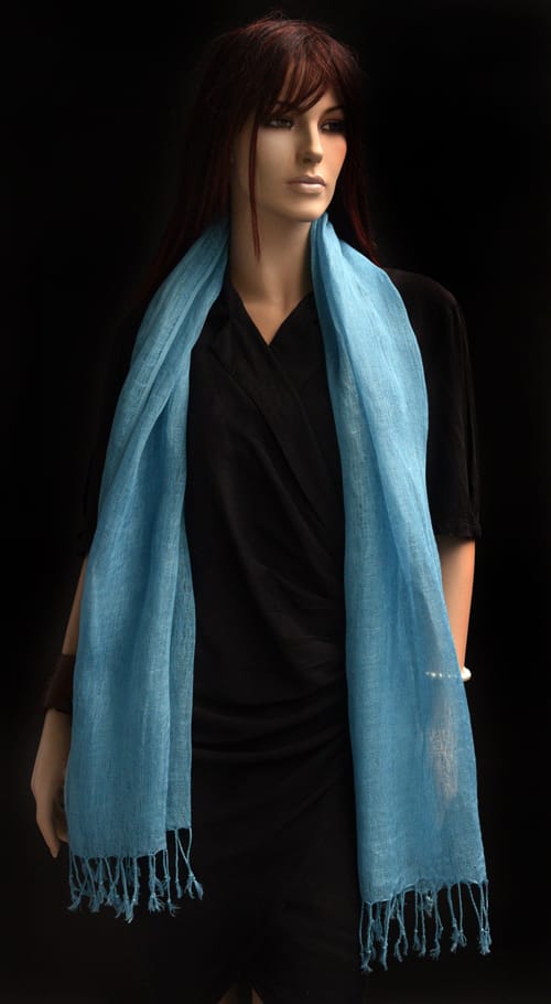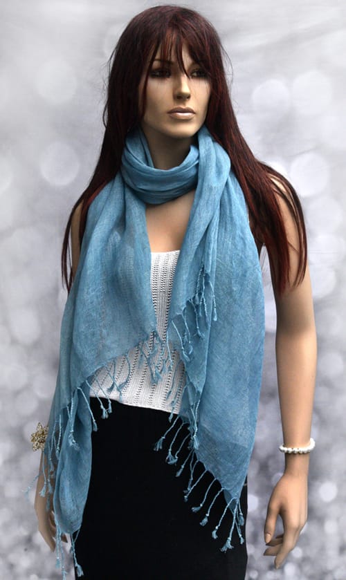 Gedempt blauwe linnen sjaal met franjes