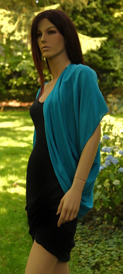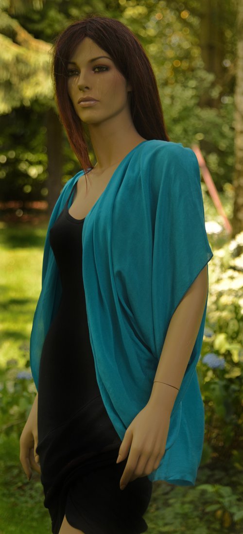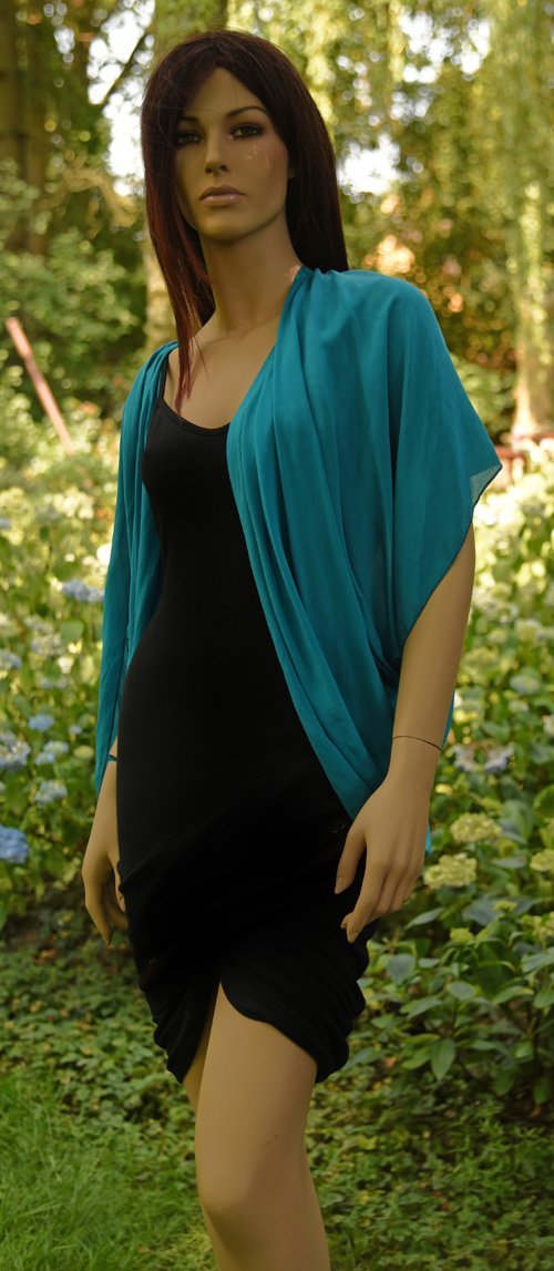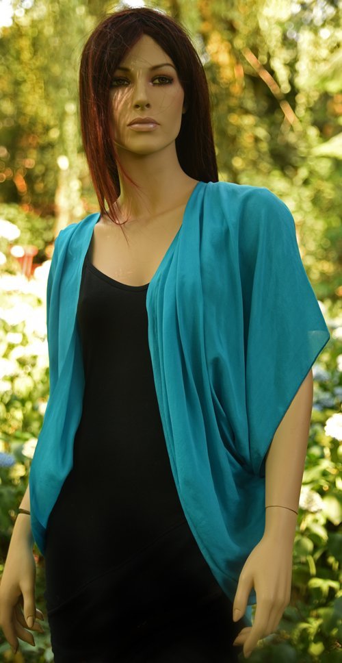Zijden turquoise vestje voor de maten 36 tot en met 44, eigen ontwerp dus uniek, mooi om te dragen op een little black dress bv.